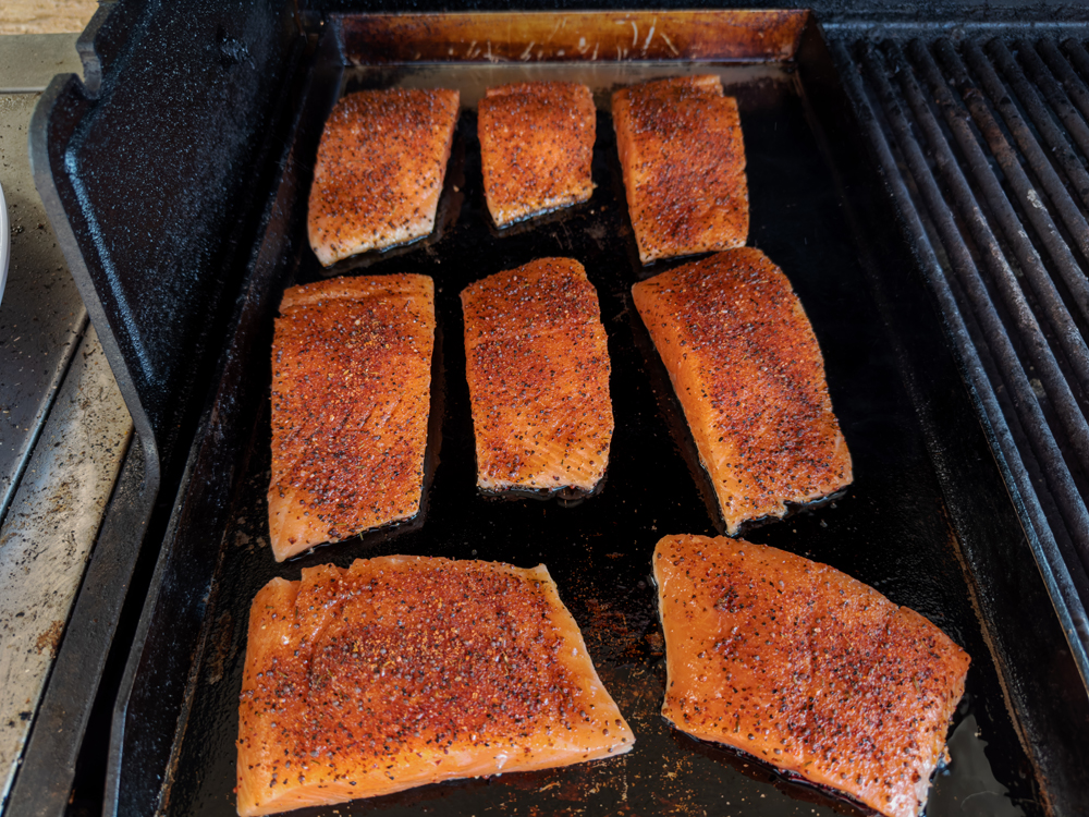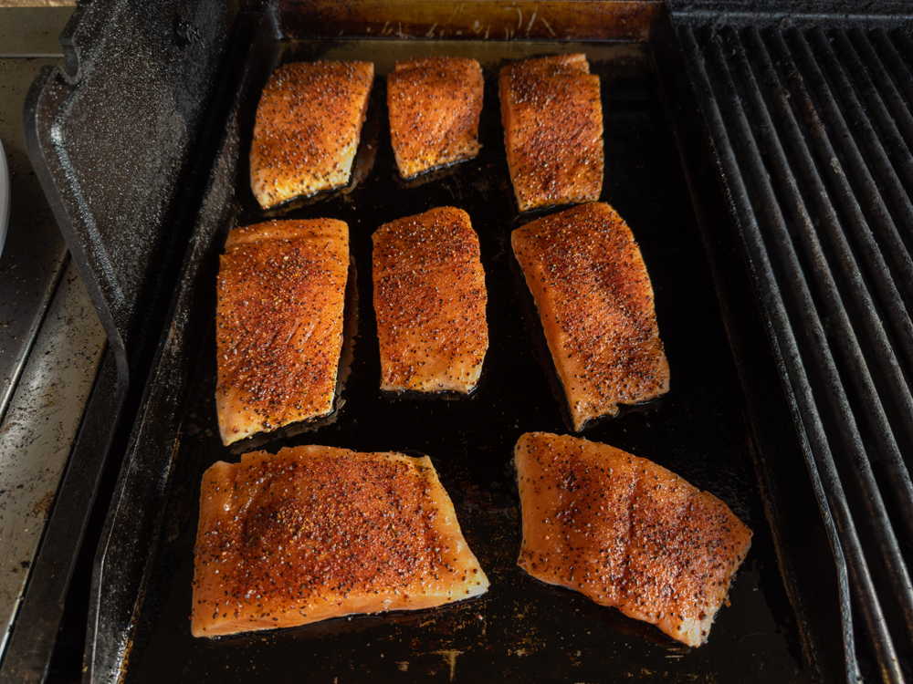 Leckeres Rezept mit Lachs zubereitet auf der Plancha. Als Grill verwenden wir einen Gasgrill.